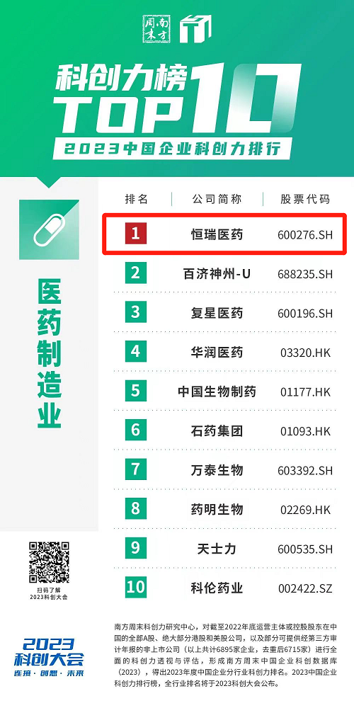 创新再获认可,九游会ag医药蝉联“中国企业科创力排行”医药制造业榜首