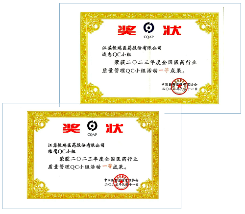 近日,第44次全国医药行业质量管理(QC)小组成果发表交流在甘肃兰州举行。会上,九游会ag医药远志QC小组、雏鹰QC小组荣获2023年度全国医药行业质量管理QC小组活动一等奖。